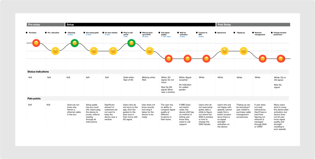 The results were a mixed bag. While we saw an 11% increase in users understanding how 5G routers work, only 3% of users found the new on-router interface helpful. I firmly believe the product had the potential to be significantly better, but tight timelines and manufacturing costs pressured the team to move forward quickly.